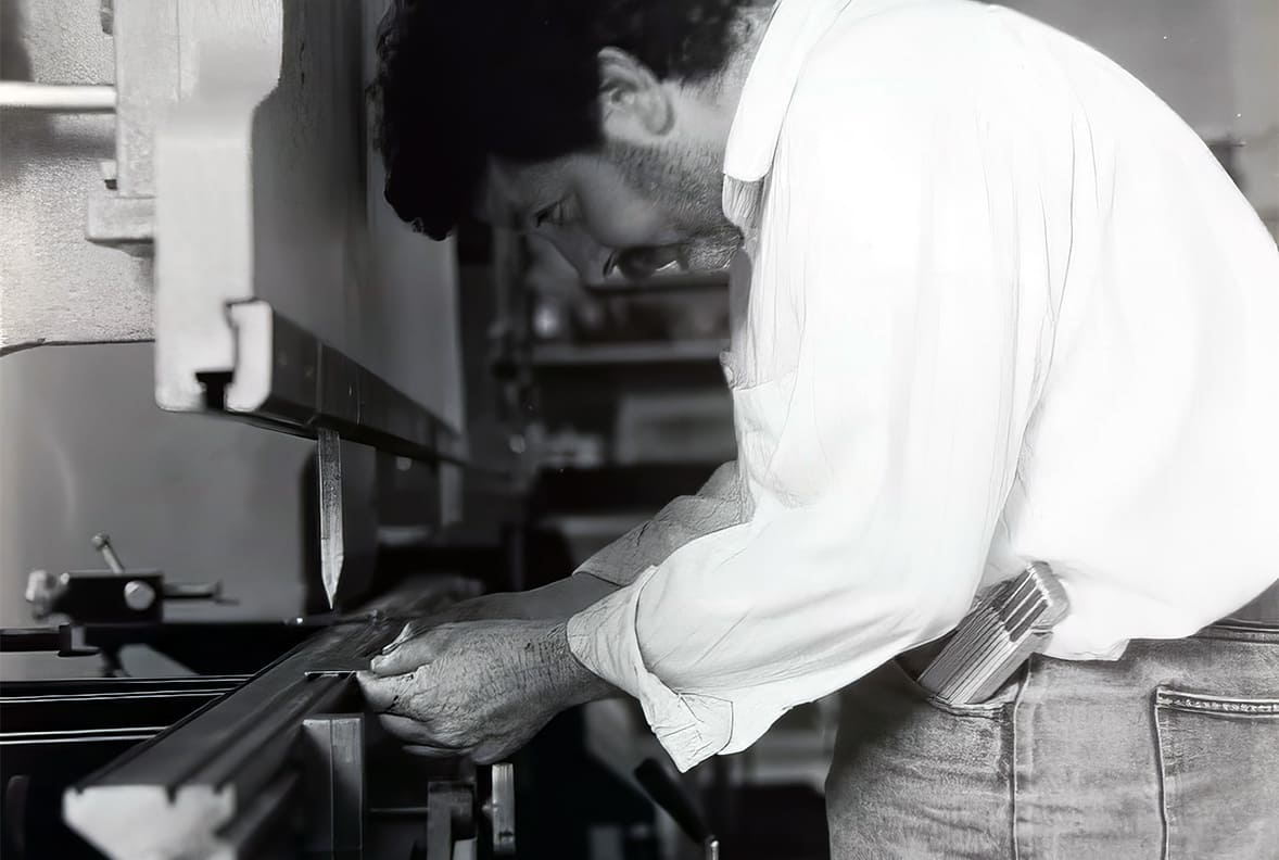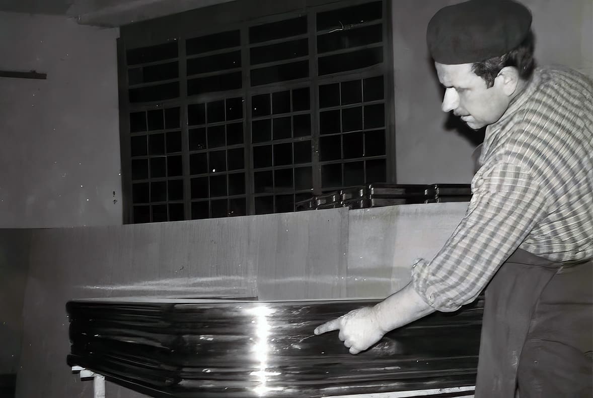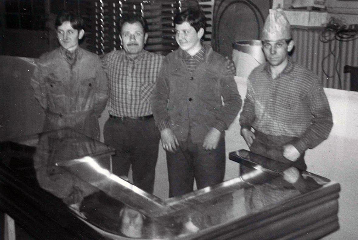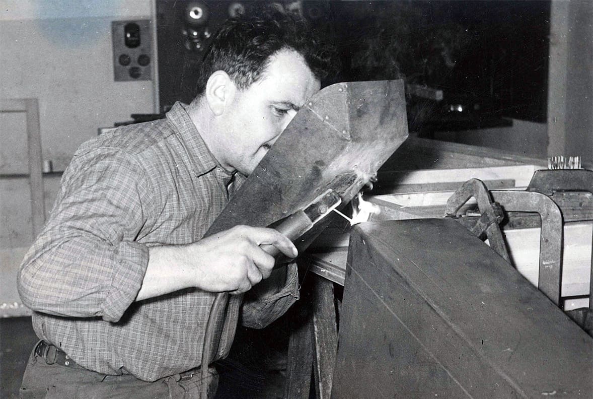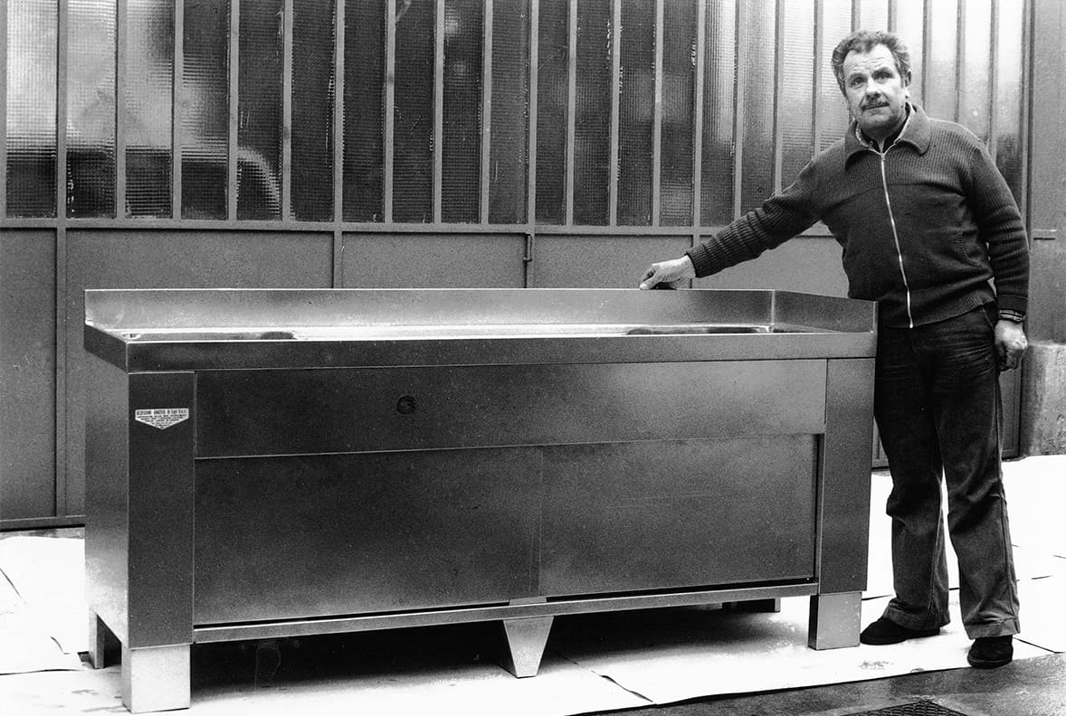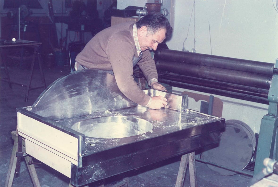 Angelo Aldegani, after a long experience gained in the post-war period as a tinsmith at companies in the province of Bergamo and Milan, starts his own business in the workshop at home. After a few years, following the growing popularity of stainless steel for bar counters, he specializes in this processing and lays the foundations of the “craft” that still characterizes the company today, more than 70 years later.
