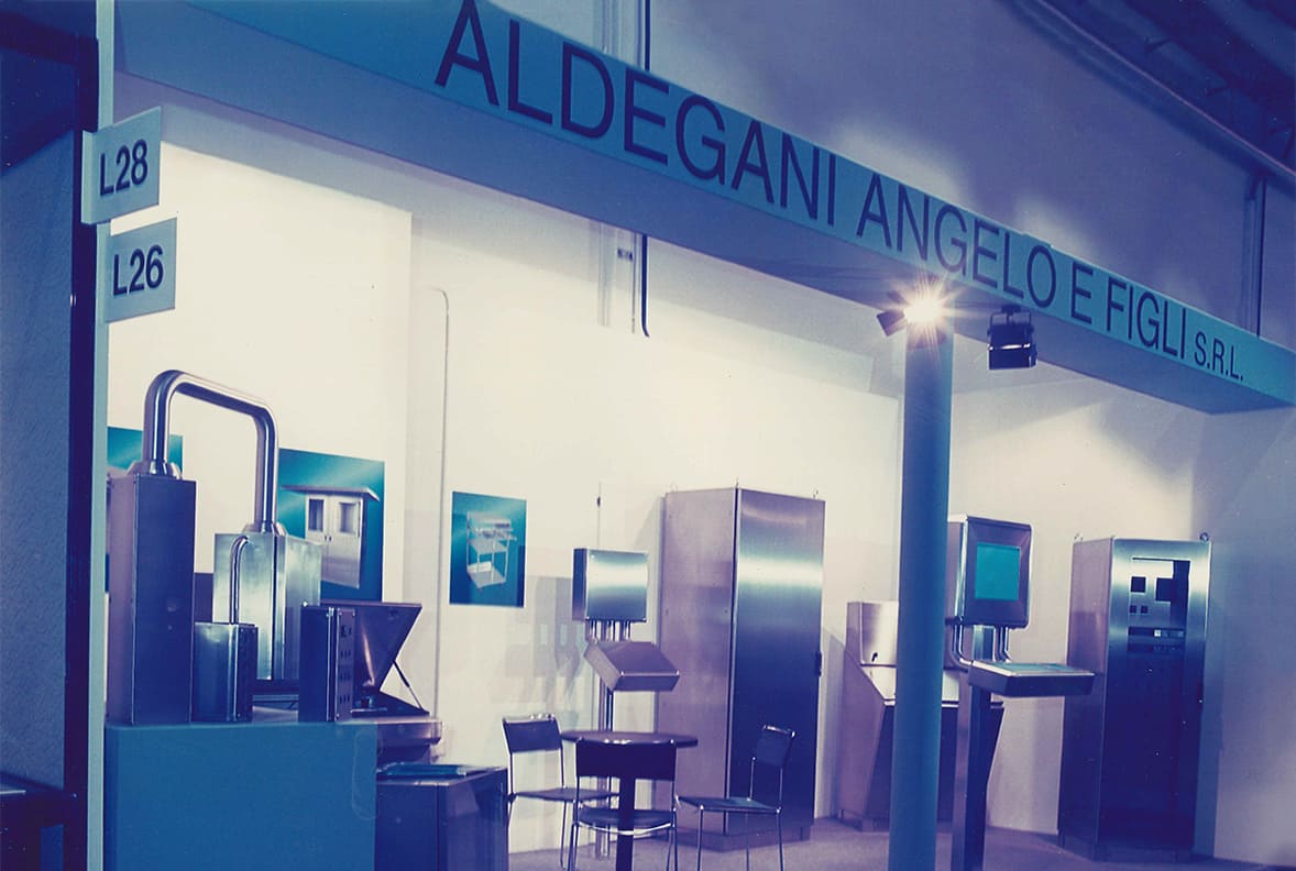 Following the involvement of the children in the business, Aldegani Angelo e Figli Snc was established in 1976, marking the original core of the current company. The company entered the industrial sector, recognizing greater growth prospects compared to the traditional world of “bar counters,” and it became necessary to move to a larger industrial facility (700 sqm) in Azzano San Paolo in 1993.