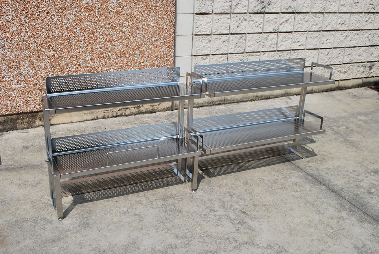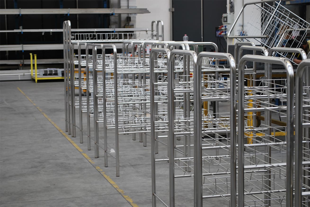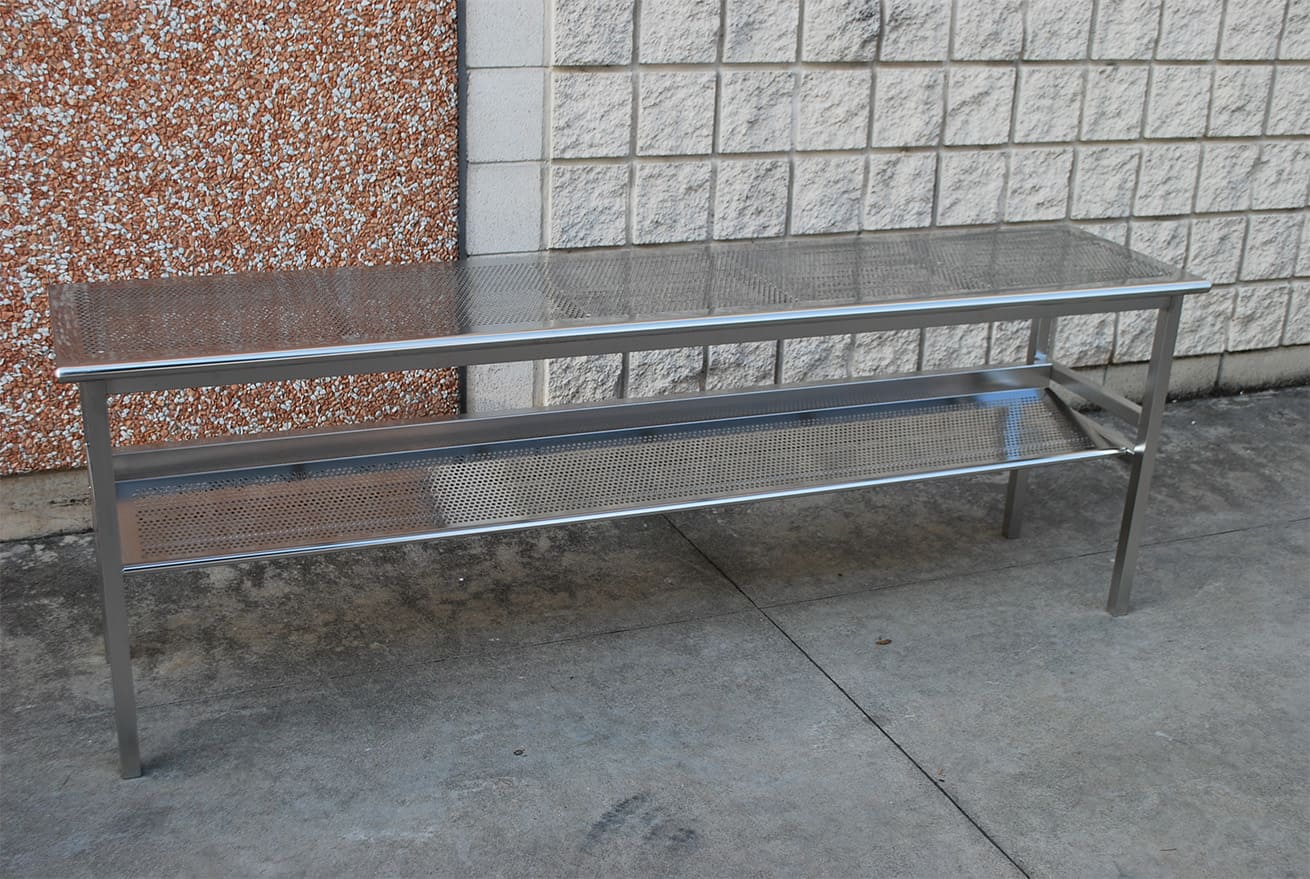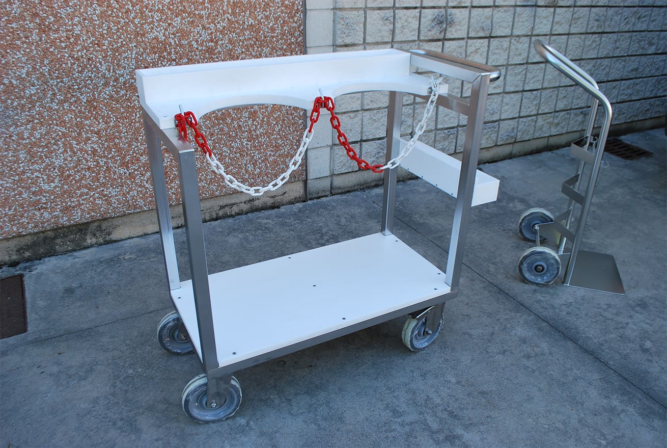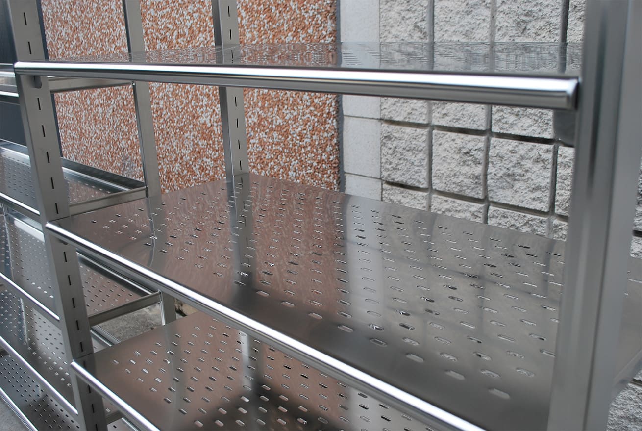 - la gestione delle correnti statiche: poiché le correnti d’aria nelle camere bianche generano correnti statiche sugli oggetti metallici, i nostri prodotti hanno tutti i piani orizzontali forati e ruote antistatiche o piedini regolabili in acciaio inox